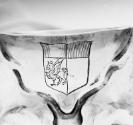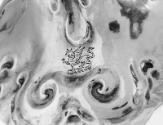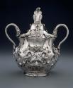 The bizarre decoration of this unsigned cup recalls the work of Christiaen van Vianen (1598–1667), a Dutch silversmith who worked in England during the reigns of Charles I and Charles II (works by Christiaen and his father Adam are displayed upstairs in Gallery 242). Intentionally strange, the shapeshifting surface suggests eyes, noses and mouths; however, this style is called “auricular” because it resembles the fleshy contours of a human ear. While the cup’s bulbous shape is typically English, its construction is not, leading to speculation that it was made in England by a European silversmith who worked with van Vianen or who imitated his distinctive style.