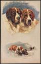 Two insets: 2 St. Bernard busts; St. Bernard rescuing hiker.