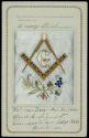 Medium/TechniqueEmbroidered silk framed and mounted with metallic ink-printed card stock.