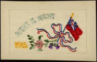 Medium/TechniqueEmbroidered silk with embossed card stock frame on card stock.