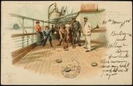"Shuffle board" Spiel am Deck. Am Bord des Doppelschrauben-Postdampfers "Pretoria".