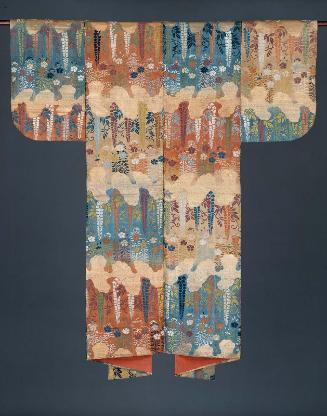 Medium/TechniqueSilk twill-weave ground with silk discontinuous supplementary patterning wefts and gilt paper strip discontinuous supplementary patterning wefts tied down with supplementary warps in twill-weave (karaori)