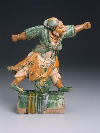 Roof tile with standing figure of Pig decorated with liuli glaze